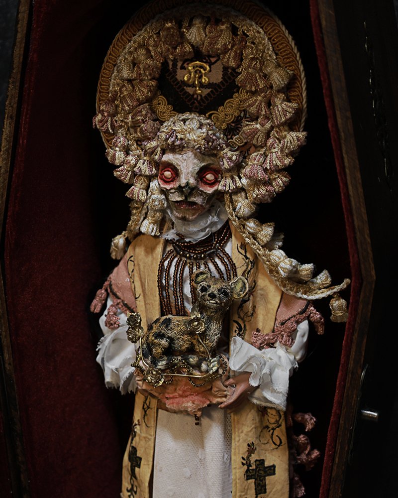 Each of my pieces is a process of individual transformation, a delirious decomposition that results from a thorough intervention, which is based on reconstruction techniques such as scuplture, Oil painting, character desing and other similar processes.